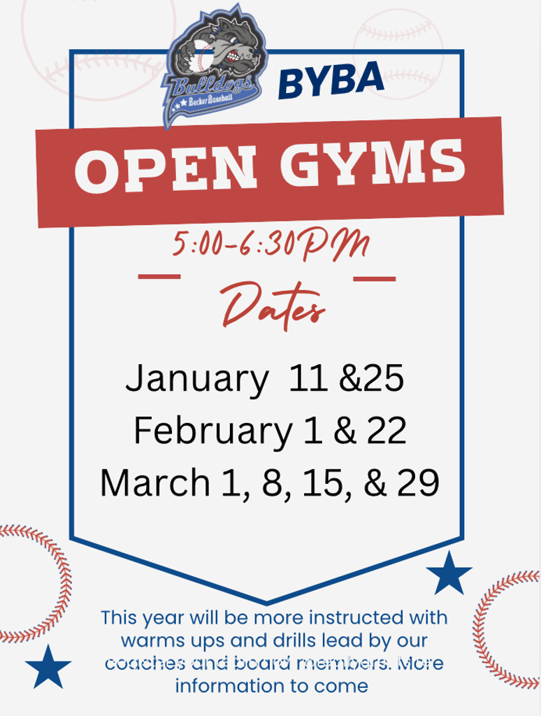 The Becker Youth Baseball Association provides the opportunity to any child in the Becker Community to play baseball. We have over 350 kids participating in our program making it one of the larges youth programs in the area. The success and strength of our program rely on your support!